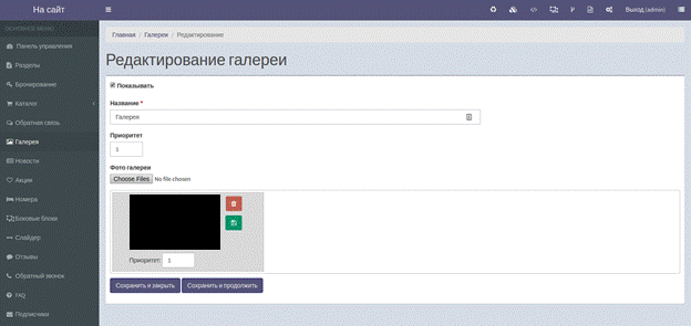 Если Вы хотите добавить какую-либо галерею на любой странице, Вам нужно сначала ее создать в данном разделе.